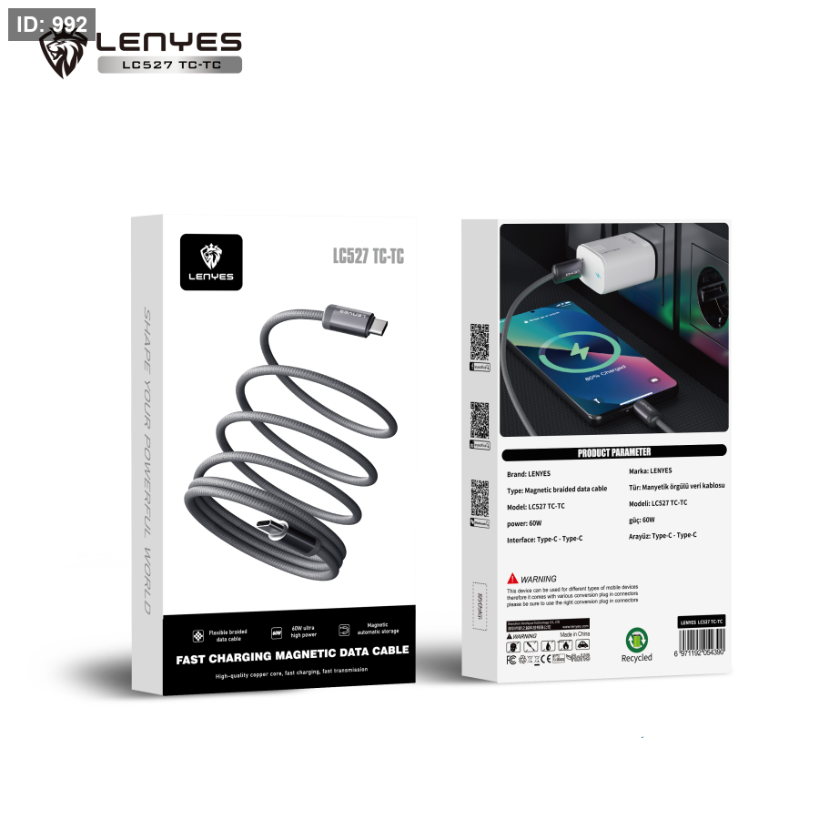 کابل شارژ و انتقال داده Type-Cبه تایپ سی Lenyes مدل LC527