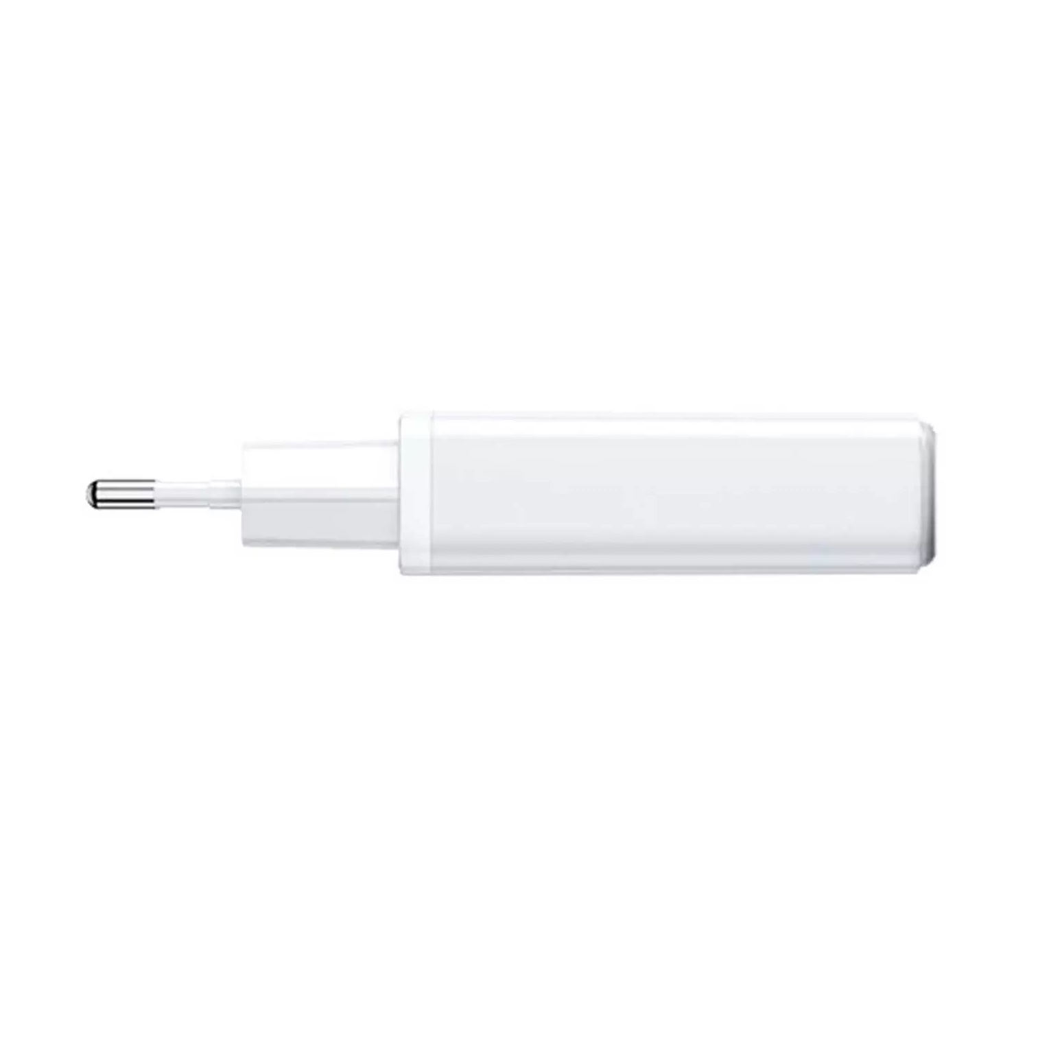 این آداپتور با رنگ سفید و طراحی شیک و ابعاد کوچک خود، گزینه‌ای ایده‌آل برای حمل در سفر یا استفاده روزمره است به طوری که لقب Ultra-Slim Charger را از آن خود کرده است. به صورت مینیمال و بسیار باریک طراحی کرده تا علاوه بر اینکه جای کمی از فضای میز و کشو را اشغال کند حمل آن هم راحت باشد. ساختار آداپتور را مواد پلی‌کربنات ‌نسوز ساخته شده که آن را از نظر دوام و ایمنی بسیار مقاوم و مطمئن می‌کند. پلی‌کربنات یکی از مواد پیشرفته و مقاوم در برابر حرارت است که به‌طور گسترده در ساخت لوازم الکترونیکی به کار می‌رود. این ماده نه تنها از نظر ساختاری مقاوم است، بلکه خواص دیگری مانند نسوز بودن و قابلیت تحمل دماهای بالا نیز دارد که آن را برای استفاده در دستگاه‌های الکترونیکی، به‌ویژه شارژرها و آداپتورها، بسیار مناسب می‌سازد. این شارژر دیواری ابعادی برابر با 45.5*16*86.2 میلی‌متر دارد. پلاگین‌های آن با پریزهای ایران سازگار است و برای استفاده نیاز به استفاده از مبدل 2 به 3 یا چند راهی برق را نخواهید داشت.
