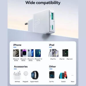 آداپتور 20 وات تایپ سی و یو اس بی همراه جوی روم مدل JR-TCF14 یکی از پیشرفته‌ترین شارژرهای موجود در بازار است که با استفاده از فناوری‌های مدرن و طراحی کاربردی، نیازهای کاربران حرفه‌ای را برآورده می‌کند. این آداپتور با قدرت شارژ فوق‌العاده و سازگاری گسترده؛ تجربه‌ای بی‌نظیر از شارژ سریع و ایمن ارائه می‌دهد. در ادامه، ویژگی‌های منحصربه‌فرد این محصول را بررسی می‌کنیم.