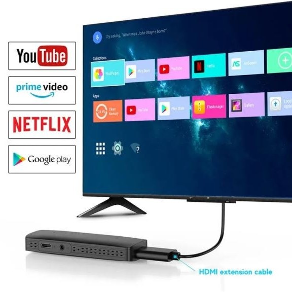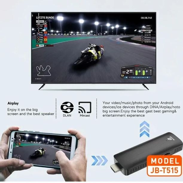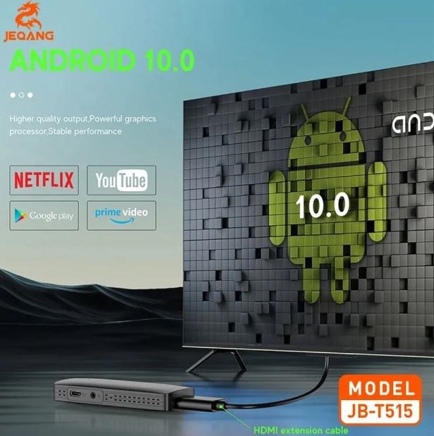 بر خلاف اندروید باکسها که با کابل به تلویزیون وصل میشوند، این محصول مستقیماً به پورت HDMI 2.0 تلویزیون متصل شده و تلویزیون معمولی شما را به یک تلوزیون هوشمند تبدیل میکند. این محصول دارای یک ریموت کنترل بوده که دکمههایی برای روشن/خاموشن نمودن دستگاه، تنظیم صدا، انتقال بین منوها و باز کردن سریع اپلیکیشنها و… قرار دارد. بر روی بدنه این محصول، یک درگاه تایپ سی برای تامین برق و یک درگاه HDMI 2.0 تعبیه شده است. این مدل نسبت به مدلهای مشابه دارای قدرت و سرعت بیشتری است و امکان اتصال به WI-FI آن نیز تقویت شده است، همچنین فضای ذخیره سازی بیشتری نسبت به مدلهای قبلی دارد JT-B515 را به تلویزیون HD وصل کنید و برای اتصال بهتر و راحتی به WI-FI، از کابل HDMI استفاده کنید.