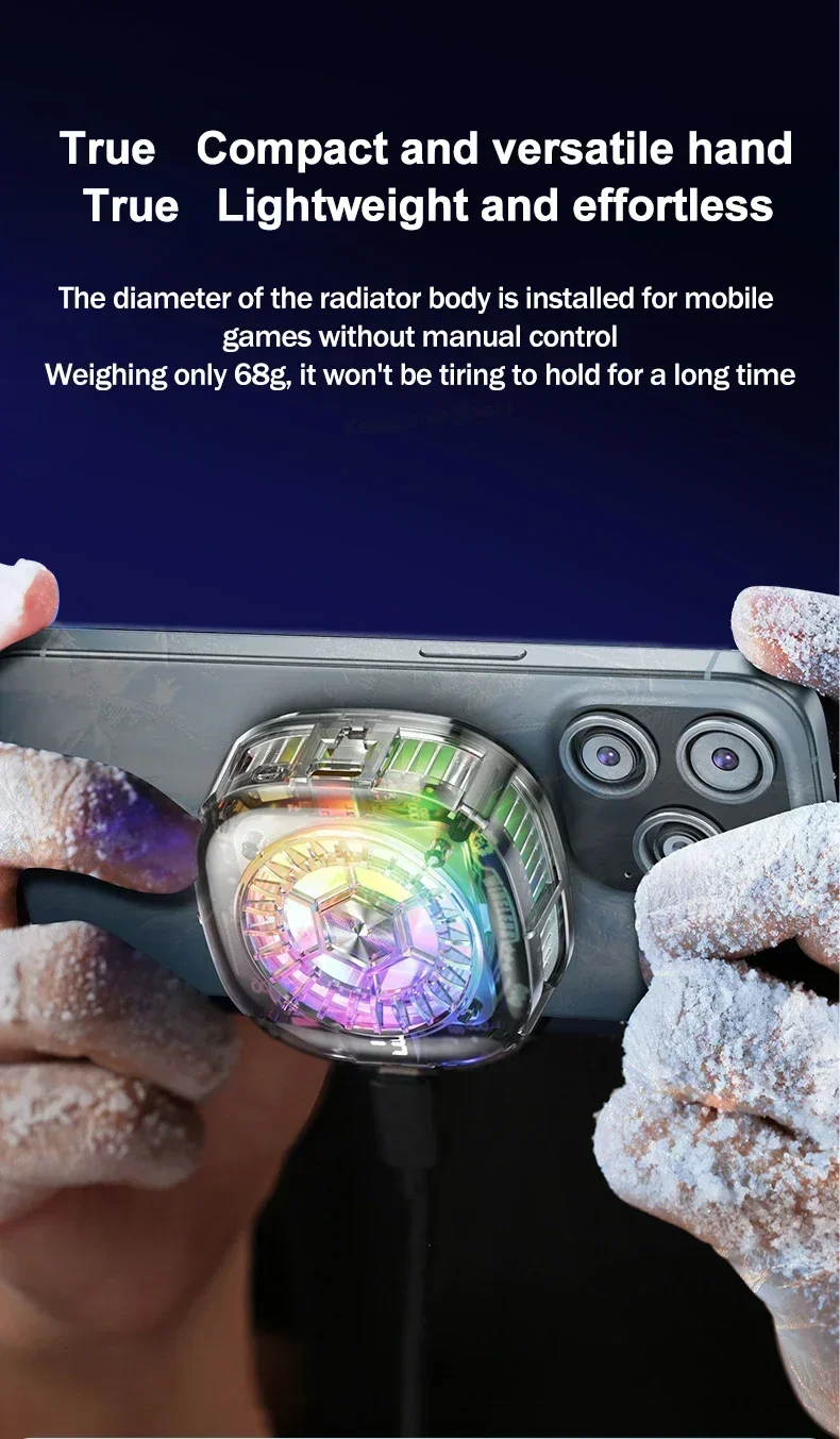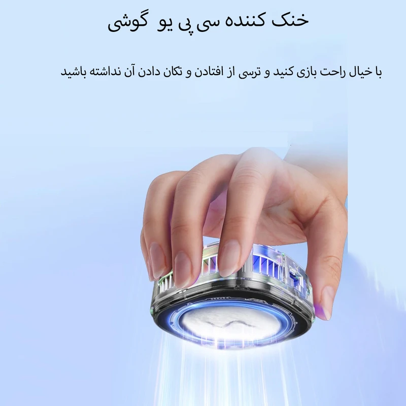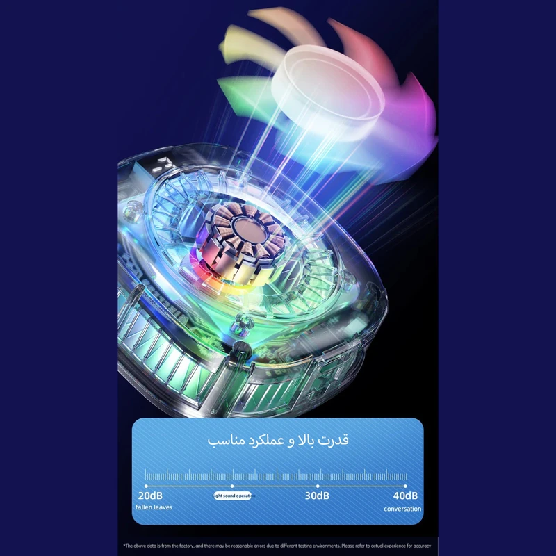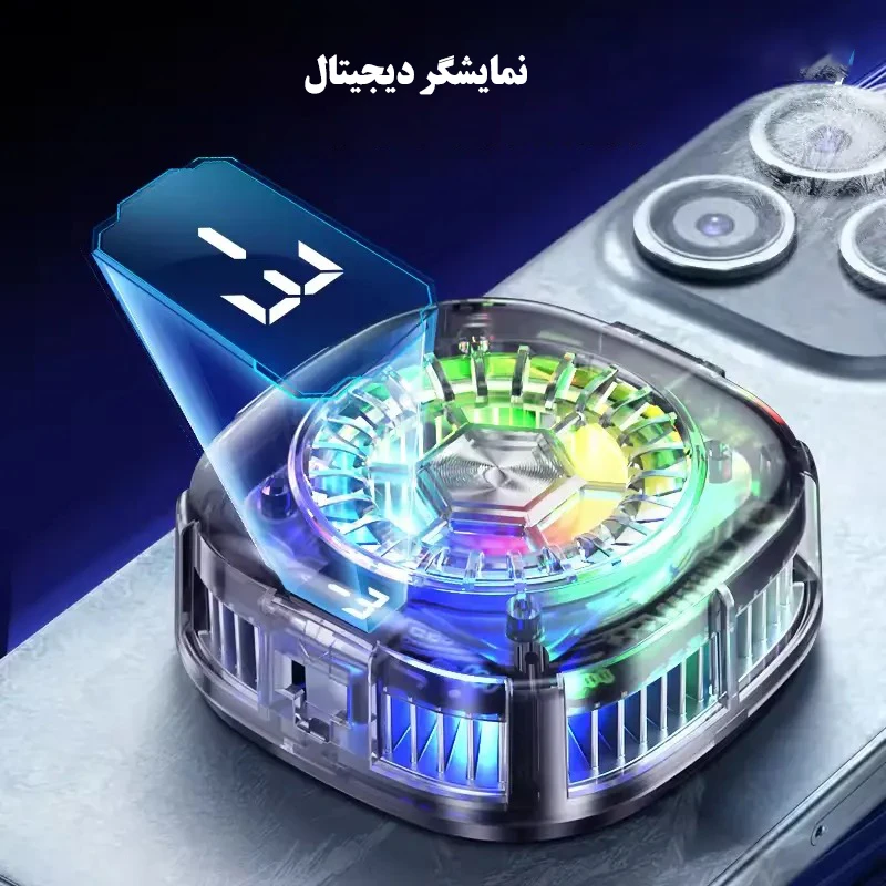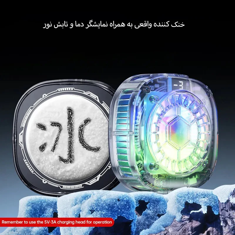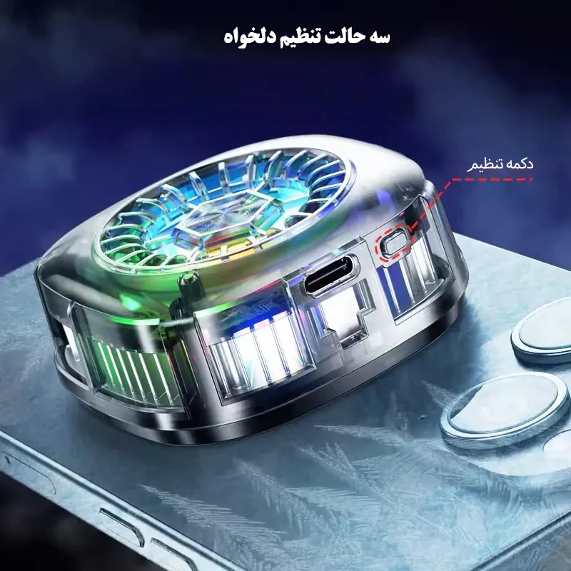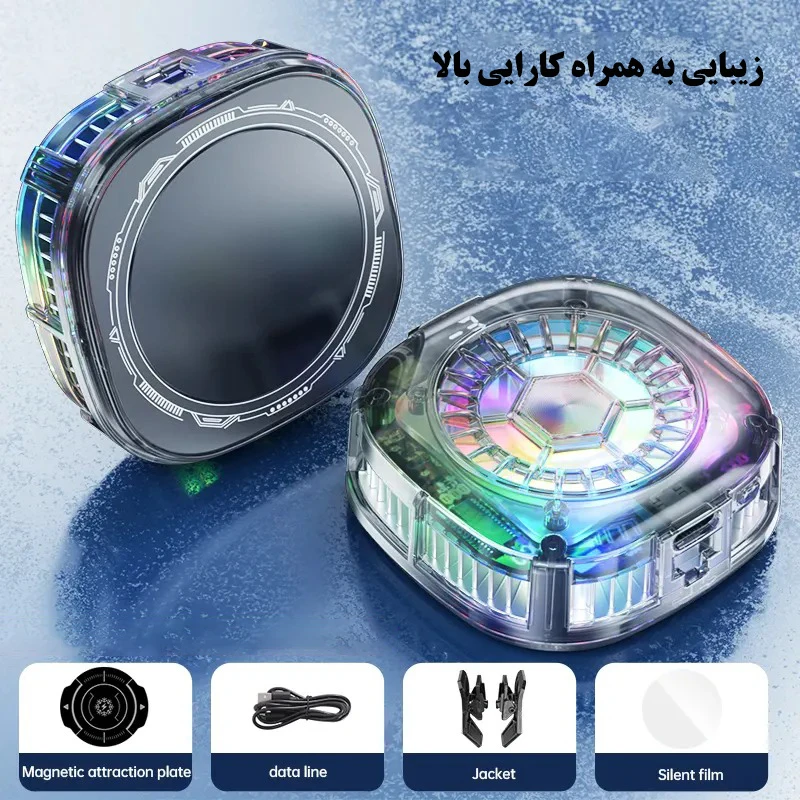 - -رابط: پورت Type-C/ اتصال مگنتی و گیره ای/ ساختار شفاف/ جریان ورودی :5 ولت، 3 آمپر دارای سوییچ خاموش و روشن و تنظیم سرعت فن (3 حالت مختلف برای فن)
