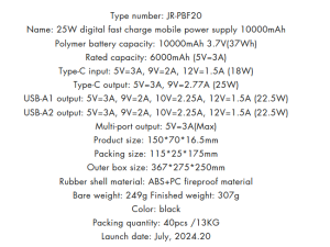 ویژگی های بارز پاوربانک JR-PBF20