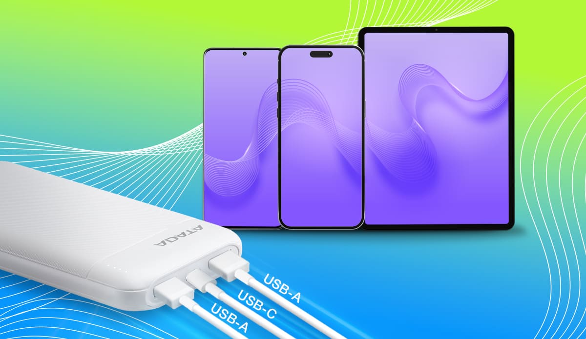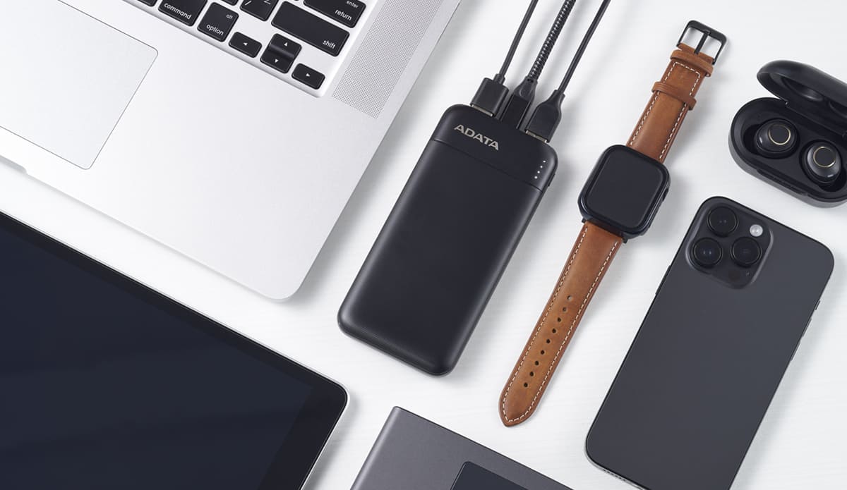 فرض کنید که سر کار هستید و ساعت هوشمند و موبایل شما خاموش شدهاند و نمیتوانید برای شارژ هیچکدام صبر کنید. این پاور بانک با وجود دو پورت خروجی USB و یک پورت ورودی /خروجی تایپ سی، به شما این امکان را میدهد که 3 وسیلهی خود را به صورت همزمان شارژ کنید. به این وسیله در زمان صرفهجویی میکنید و بدون فوت وقت و گذر زمانی طولانی وسایل خود را شارژ و قابل استفاده میکنید. ای دیتا دارای دو پورت USB-A و یک پورت USB-C دو طرفه است. درحالت استفاده ی یک پورت به تنهایی توان برابر 20 وات اندازه گیری شده است. مجموع توان خروجی این پورتها حداکثر 8 ولت 3 آمپر و یا 15 وات است. توان بالای این دستگاه به شما اجازه میدهد تا 3 دستگاه را به صورت همزمان شارژ کنید.