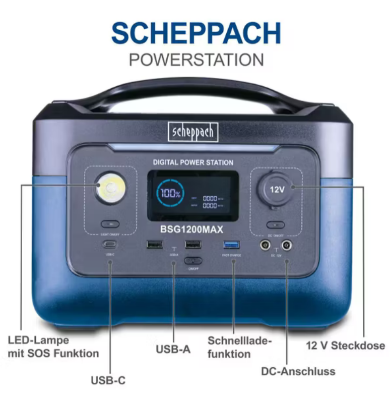 لذا پاور استیشن Scheppach BSG1200MAX با باتری 577 Wh، موج سینوسی خالص و مجموعهای کامل از پورتها، یک گزینه ایدهآل برای شرایط اضطراری، سفر و کمپینگ است. اگر نیاز دارید دستگاههای برقی یا الکترونیکی حساس را بدون برق شهری و با خیال راحت تامین کنید، انتخاب این محصول از فروشگاه اینترنتی اقلیما سرویس به شما پیشنهاد می گردد. ویژگی های برجسته ی این محصول به شرح زیر به خدمتتان اعلام میگردد: