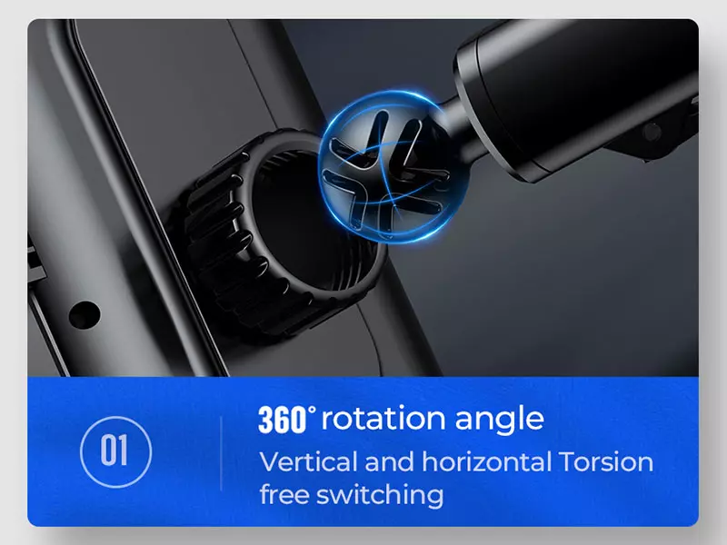 Three-axis به معنی “سه محور” بوده و به این منظور است که در سه جهت محورهای مختصات X , Y , Z می توانید آن را بچرخانید تا بهترین زاویه دید را برای خود بسازید. پایه مکنده مجهز به سری توپی شکل در پشت نگهدارنده است که جهت چرخش 360 درجهای به منظور ایجاد زاویه دلخواه به صورت افقی و عمودی می باشد. از این رو با یک براکت جمع شده و تاشو و سری قابل چرخش 360 درجه؛ زاویه ای انعطاف پذیر و مورد نظر خود را به دست آورده اید که هرگز دید رانندگی شما را مسدود نمی کند و می توانید آن را در موقعیتی تنظیم کنید که راحت باشید.