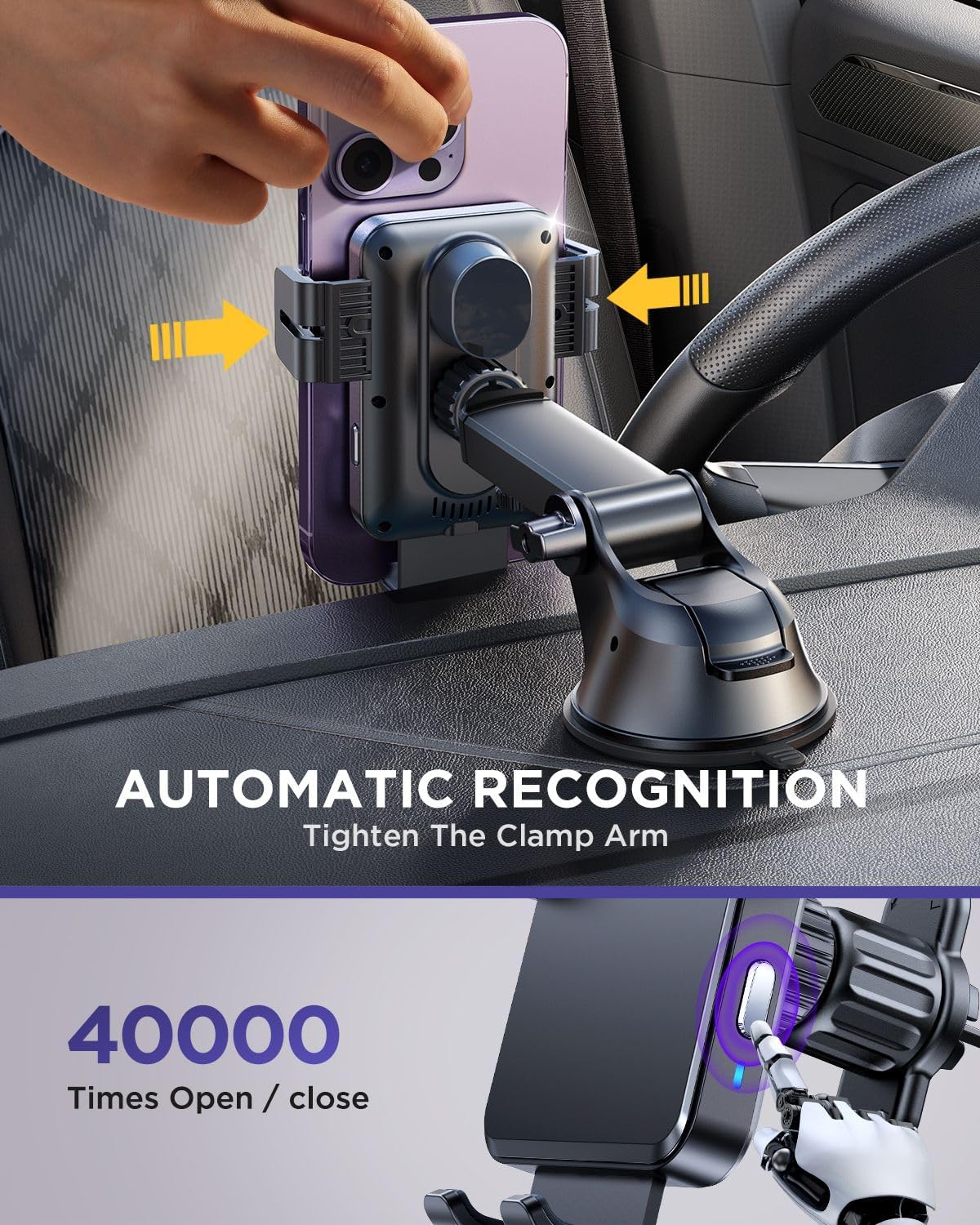 - - قرار دادن گوشی با یک دست و بسته شدن الکتریکی هوشمندانه بازوها محل نصب