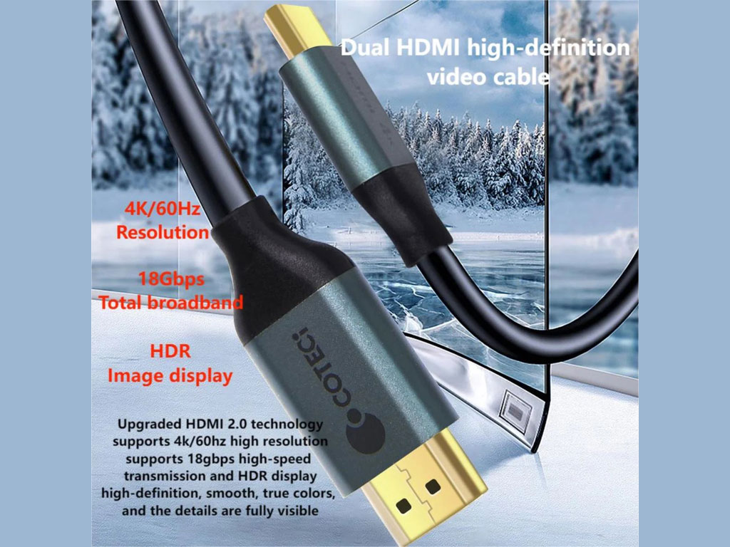 به منظور انتقال تصویر و صدا، کمپانی Coteetci کابل HDMI انتقال تصویر 87101 را طراحی و به بازار ارائه کرده که یک کابل HDMI با کیفیت خوب است و برای انتقال سیگنالهای تصویری و صوتی با کیفیت بالا بین دستگاه ها ویدئویی ساخته شده است. انتقال صدای دیجیتال یک فاکتور مهم برای کابل های HDMI می باشد. این کابل میتواند صدای دیجیتال را بهصورت همزمان با تصویر منتقل کند، که این امر برای تماشای فیلمها و شنیدن موسیقی بسیار مهم است. مدل 87101 با فناوریهای پیشرفته طراحی شده است که امکان انتقال سریع دادهها را بدون افت کیفیت فراهم میآورد. این ویژگی به شما امکان میدهد از تماشای بدون وقفه لذت ببرید. سرعت انتقال داده با سرعت بالا تا 18 گیگابیت در ثانیه است که تضمین میکند سیگنالهای صوتی و تصویری شما سریع و دقیق منتقل میشوند.
