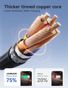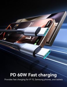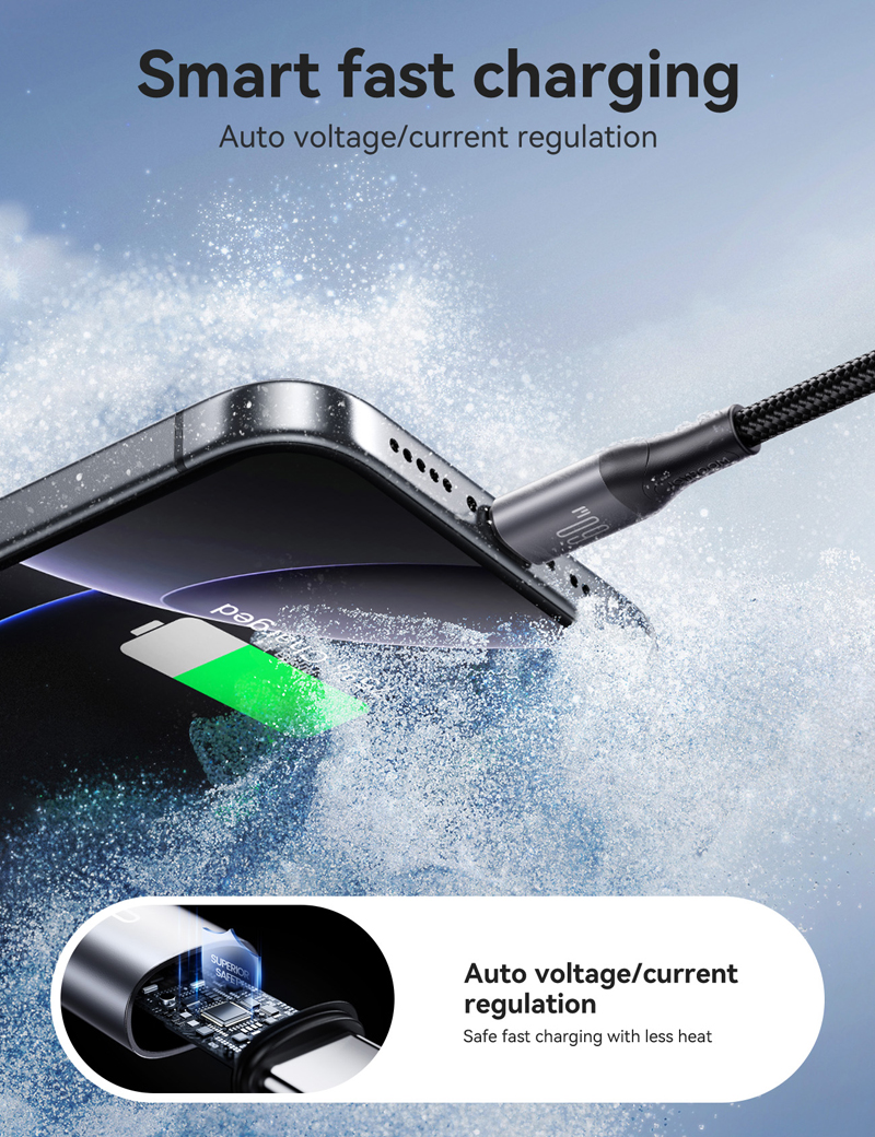 تکنولوژی PD (یا همان پاور دلیوری) سبب شده تا توان شارژدهی این کابل تا 60 وات برسد تا بتواند به راحتی لپتاپ و مکبوک را نیز شارژ نماید. همچنین سریهای Type-C این کابل مجهز به تراشهی هوشمند داخلی جهت یکسانسازی شدت جریان خروجی متناسب با نوع جریان دستگاه میباشد تا آسیبی به باتری دستگاه وارد نشود. این راندمان شارژ بالا نتیجه ی استفاده از هسته مسی قلع اندود ضخیمتر است که مقاومت کمتر و شارژ سریعتر را در اختیار قرار می دهد.
